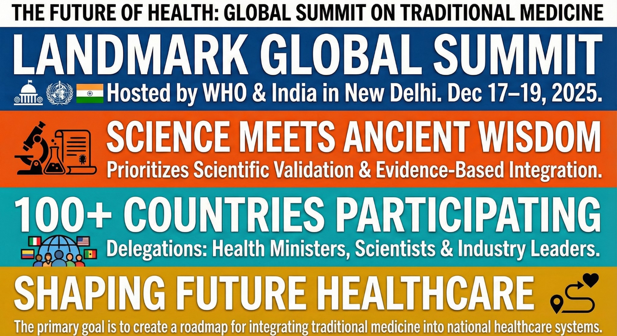 In December 2025, India officially commenced the countdown to the 2nd WHO Global Summit on Traditional Medicine. The event is scheduled to be held from December 17–19, 2025, at Bharat Mandapam, New Delhi.